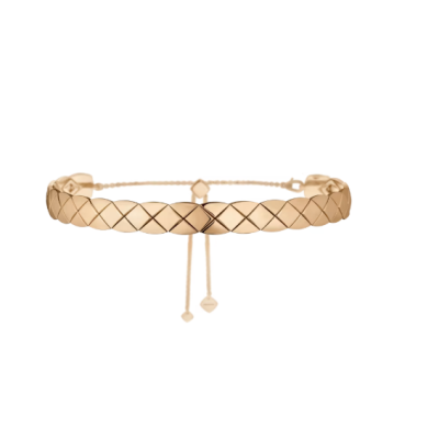 COCO CRUSH柔性贴颈项链,以米色18K金打造。这款项链配有滑动搭扣,可贴合颈间线条,堪称技术创举。image.png